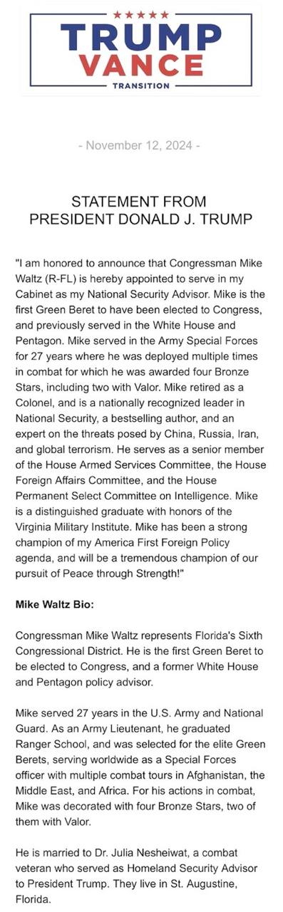 “Mike! Why is Trump appointing all of these Deep Staters, Neocons and Zionists to his administration? Muh Suzie Wiles! Muh Pfizer! Muh Marco Rubio! Muh Mike Waltz! Muh Israel?” —— (Deep breath, palm to face, shaking my head.)
