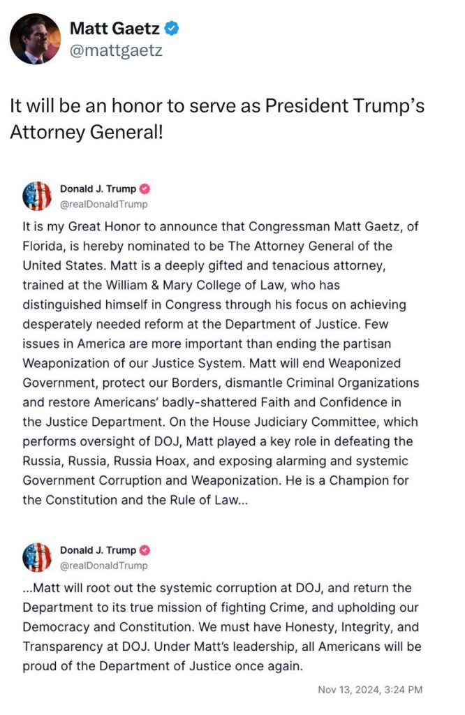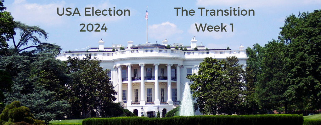 Following the landslide results of the USA Presidential Election 2024 by President Trump and the Republican Party as shown in last weeks USA Election 2024 – GEMA Special Report, this week we focus on the transition as President Trump lays out his plans and starts electing his team.