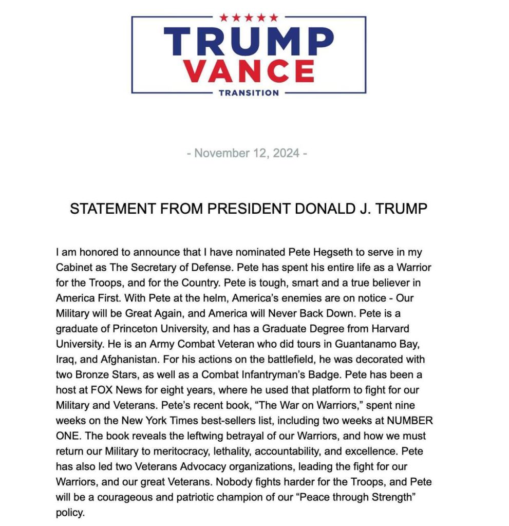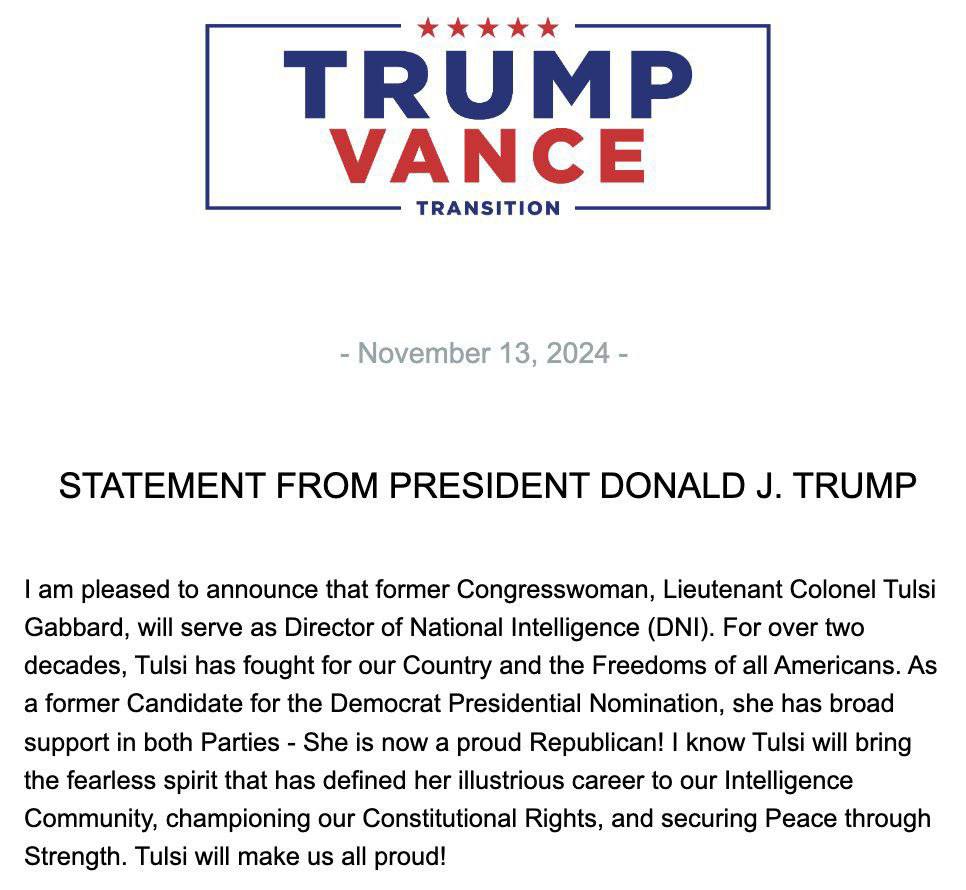 After president-elect Trump nominated the likes of Tulsi Gabbard, RFK Jr. Matt Gaetz and Pete Hegseth to cabinet positions, the usual crowd of neocons, warmongers and screechy leftists are unhappy. Good.